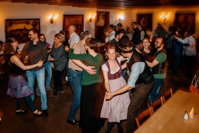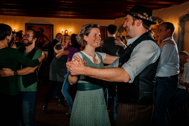 Wir treffen uns 1x im Monat dienstags ab 19:30 Uhr. Auf dem Programm stehen die bayerischen Standards (Boarischer, Walzer, Polka, Dreher), einfache Figurentänze, lustige Tanzspiele und natürlich Zwiefache. Die Schritte und Abfolgen der Tänze werden von Tanzmeisterin Vroni Schweikl gezeigt. Für musikalische Begleitung sorgen Atul Barth an der Steirischen Harmonika & friends.