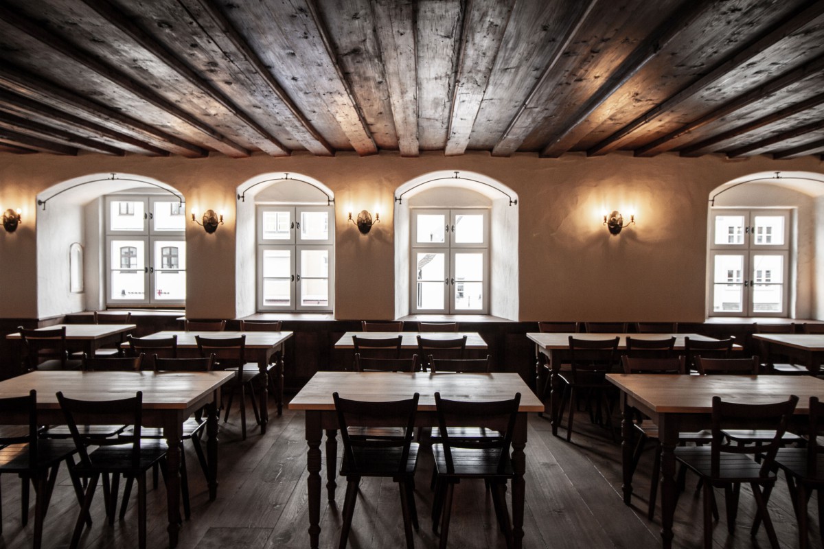 GalerieEtwas zurückgezogen vom Trubel der Schwemme findet sich im 1. Stock unsere Brauerstubn mit viel Platz und herrlichem Ambiente. Hier gibt es Essen und Trinken à la carte und Tische für größere Gruppen (bis max. 80 Personen). Auch für gemütliche Feiern und exklusive Gruppen ist die Stubn der perfekte Ort.